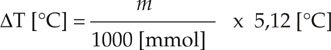 Molaler DruckIn der Praxis ist Molalität ein Maß für die Gesamtzahl aller gelösten Teilchen in einer Lösung. Die Molalität m einer gegebenen Lösung definiert sich so: m = (1000 x u x Nmol) / (N0 x M0) mit u = 1 bei einer undissozierten Lösung; ansonsten entspricht u der Gesamtanzahl der Ionen, die in einem Molekül der Lösung vorhanden sind oder sich gebildet haben. Nmol = Molzahl der undissoziierten Substanz. N0 = Molzahl des Lösungsmittels, M0 = Molekulargewicht des Lösungsmittels.Die Einheit für die Molalität ist das mol, im allgemeinen gebräuchlich ist das Millimol (mmol). Wenn nicht anders beschrieben, wird die Molalität durch die Gefrierpunktserniedrigung bestimmt. Zwischen dieser und der Molalität von benzolischen Lösungen bestehen die nebenstehenden Beziehungen: |