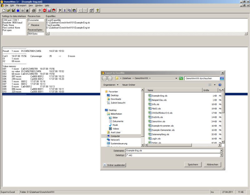 Program descriptionOsmoWinn will be supplied as accessory to an Osmometer/Cryometer with data interface. It will be used to receive measuring data with sample numbers and date/time you have measured with the Osmometer on a PC via RS232 interface. They will be displayed on the PC, could be modified and saved. Additionally you have the opportunity to export data to an MS-Excel file and a standard text file to work with them. Release 3.2 will be successor program to previous 2.0/3.0/3.1 and Com15V1.1 (for Osmometer) and Com20V1.0 (for Cryometer). It is a program for MS-Windows and provides in comparison to the old program the opportunities to edit several files at the same time, save them with every name you like and print the data.System requirementsThe program OsmoWinn was designed for MS-Windows versions 2000, XP and 7/10. For normal operation there is just a PC necessary which fulfils hardware requirements for one of these Windows versions. PC must have a free RS232 interface (COM1 to COM4), otherwise you are not able to receive data from an Osmometer/Cryometer. This program is not usable without an Löser Osmometer/Cryometer.i Osmometer basici Osmometeri CryometerBrochures and Enquiry |